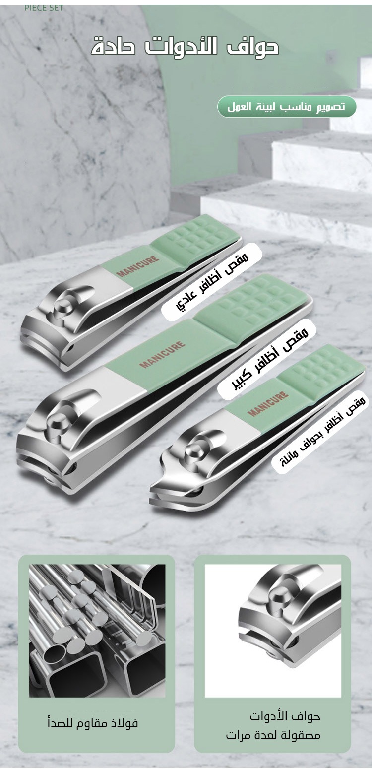 تحتوي مجموعة العناية بالأظافر على ادوات للعناية باليدين والعناية بالقدم والتي تلبي جميع احتياجاتك
